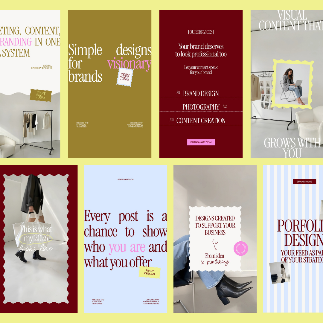 El diseño es aesthetic, moderno y en tendencia, pensado para adaptarse fácilmente a distintas marcas y estilos sin perder coherencia visual.