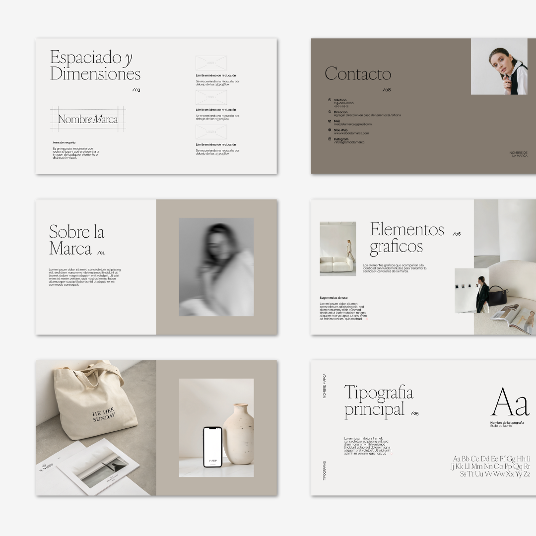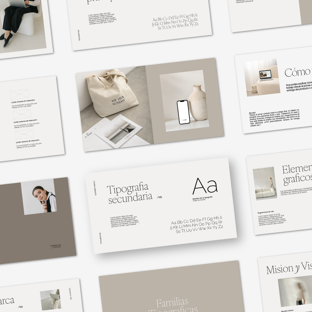 Ideal para diseñadores y emprendedores que buscan presentar su identidad visual de forma clara y profesional.