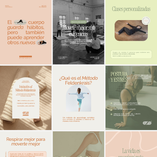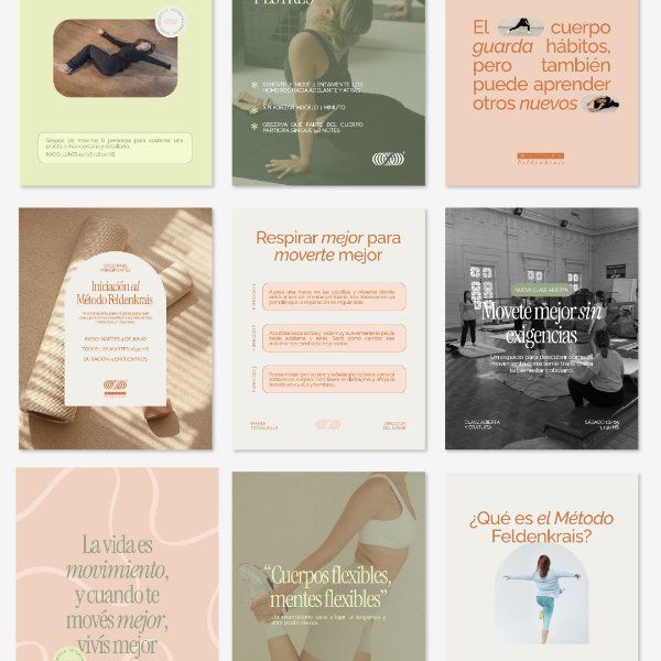3. Diseño de plantillas: Una vez aprobado el moodboard, diseño las plantillas editables en Canva: todas son editables, podes modificarles el color de fondo, texto y fotos a tu gusto, y usarlas las veces que quieras. Cada plantilla de Posteo te la entrego con la idea lista para publicar.