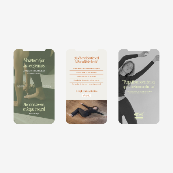 Diseños para Instagram Stories enfocados en comunicación rápida y estética: avisos, preguntas, novedades, presentación de servicios y venta suave.